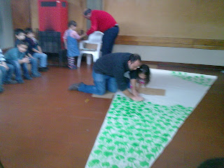 As mãos pintadas para construir a árvore de Natal