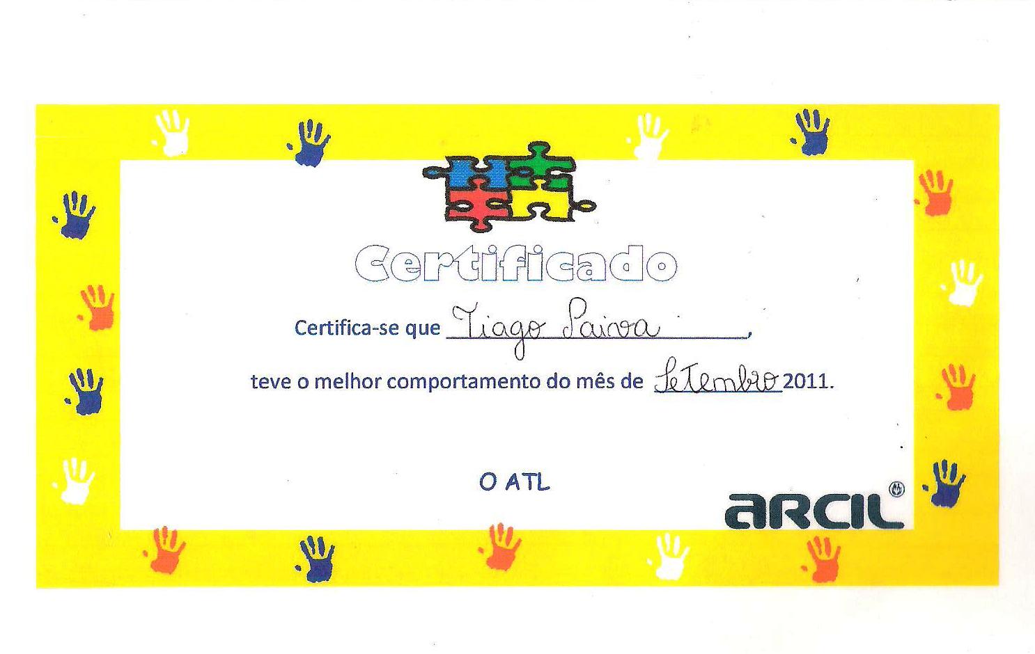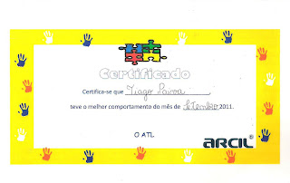Hoje o nosso colega Tiago recebeu um diploma de melhor comportamento nas ATL (Atividades de tempo livre).