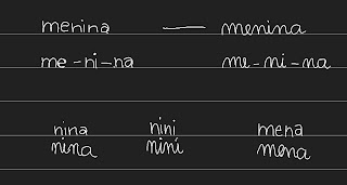 Alguns meninos já conseguem ler algumas palavras formadas a partir das sílabas - "palmas" - da palavra MENINA.